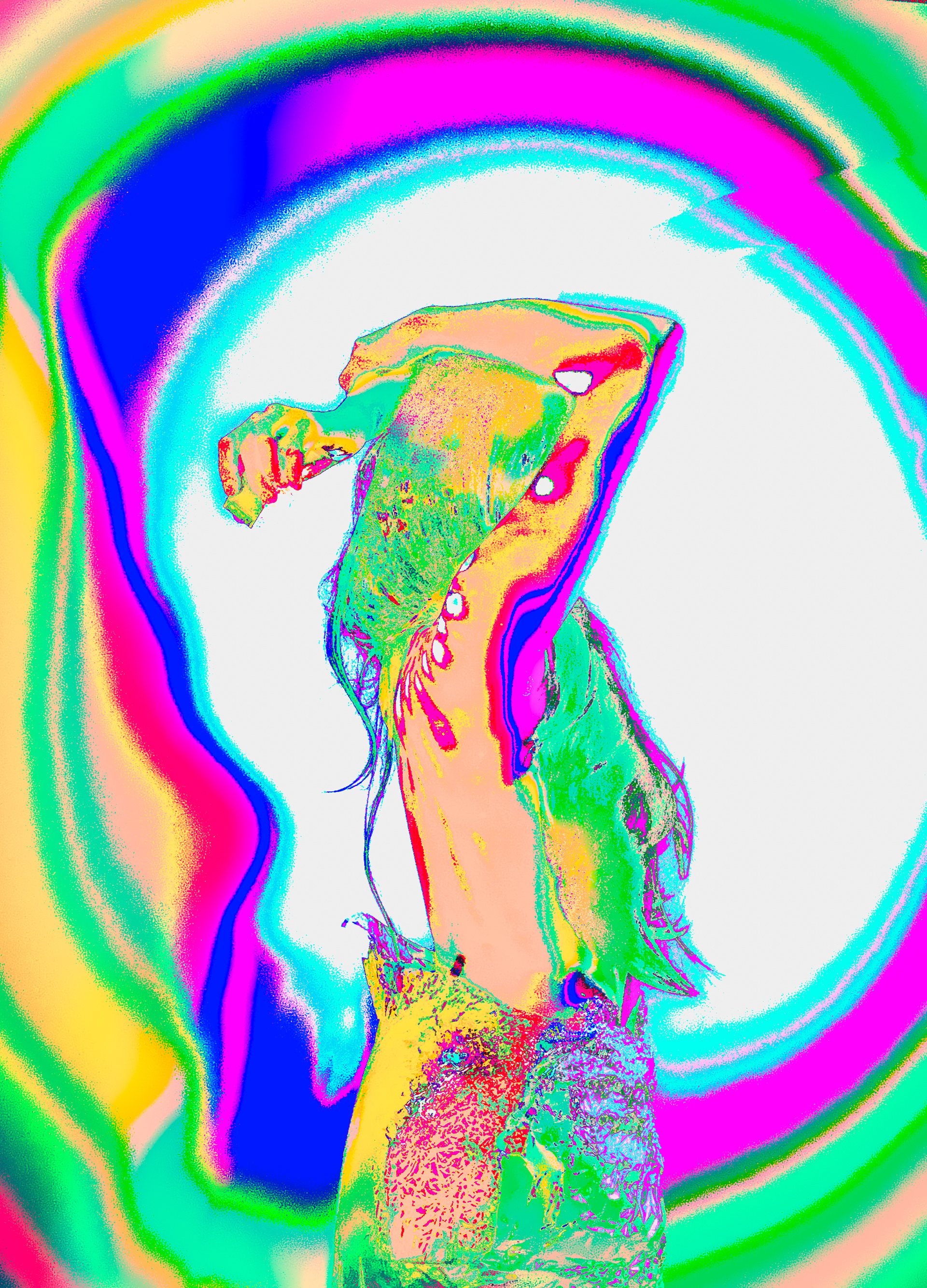 digital bodily diary in a state of overload. A series of self‑portraits created in a solitary ritual — between light, skin, and distortion. Psychedelic textures and color noise become metaphors of inner tension. Here the body is not an object, but an interface. It dissolves, pulses, disappears into the stream. A project about the fragility of perception, about control and its loss. Technique: Created with simple tools — the front camera of a phone and three sources of colored light. The final stage was shaped through color curves in Lightroom, where distortion and overload become part of the artistic intent.